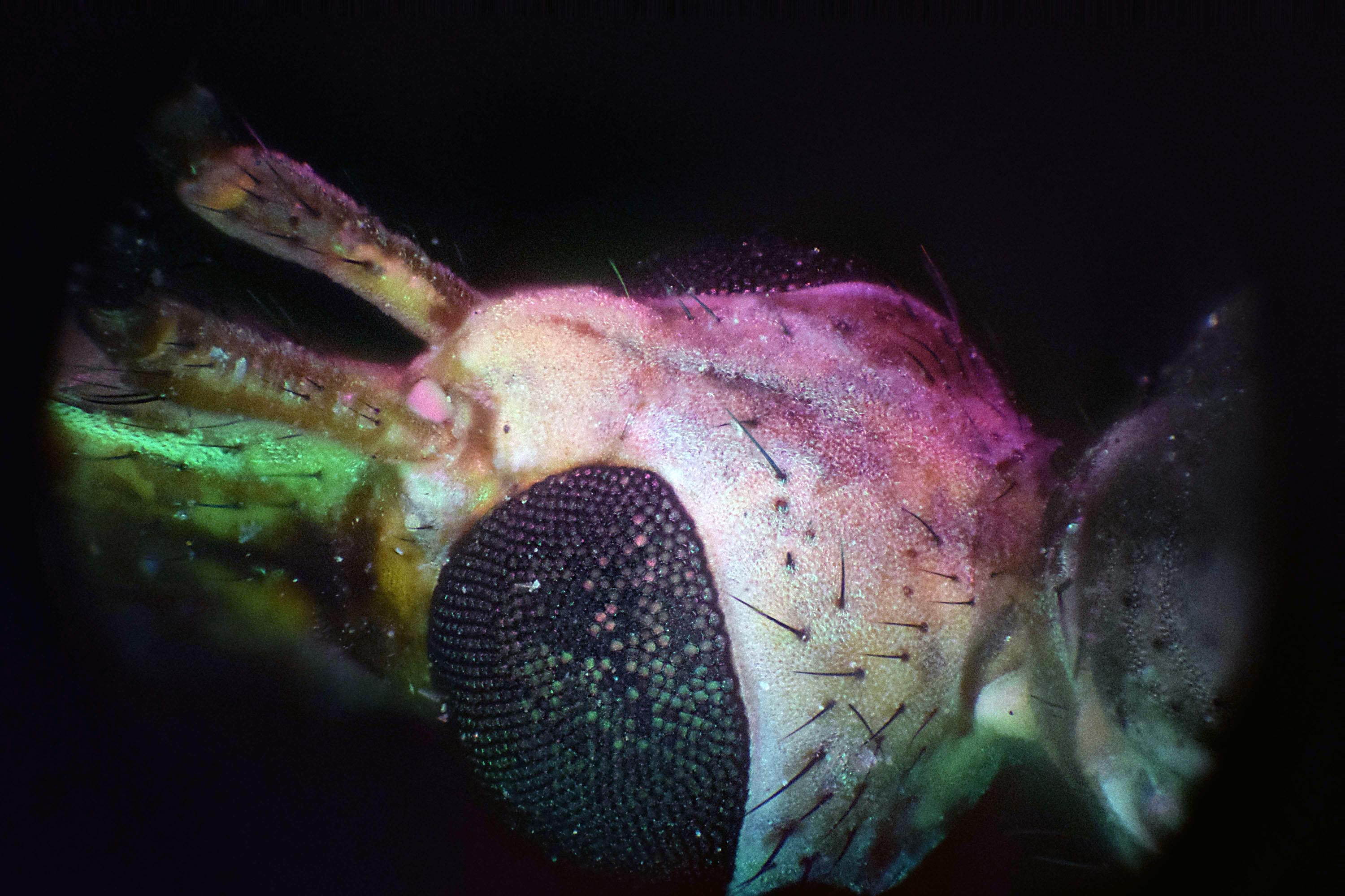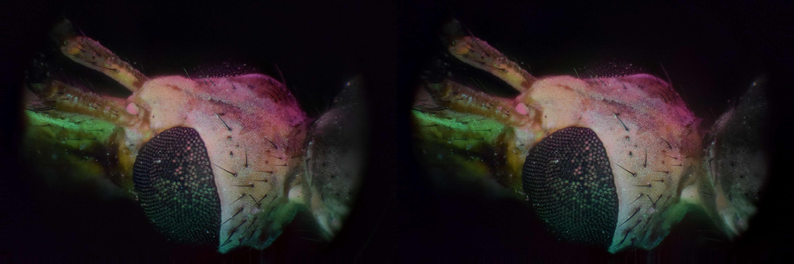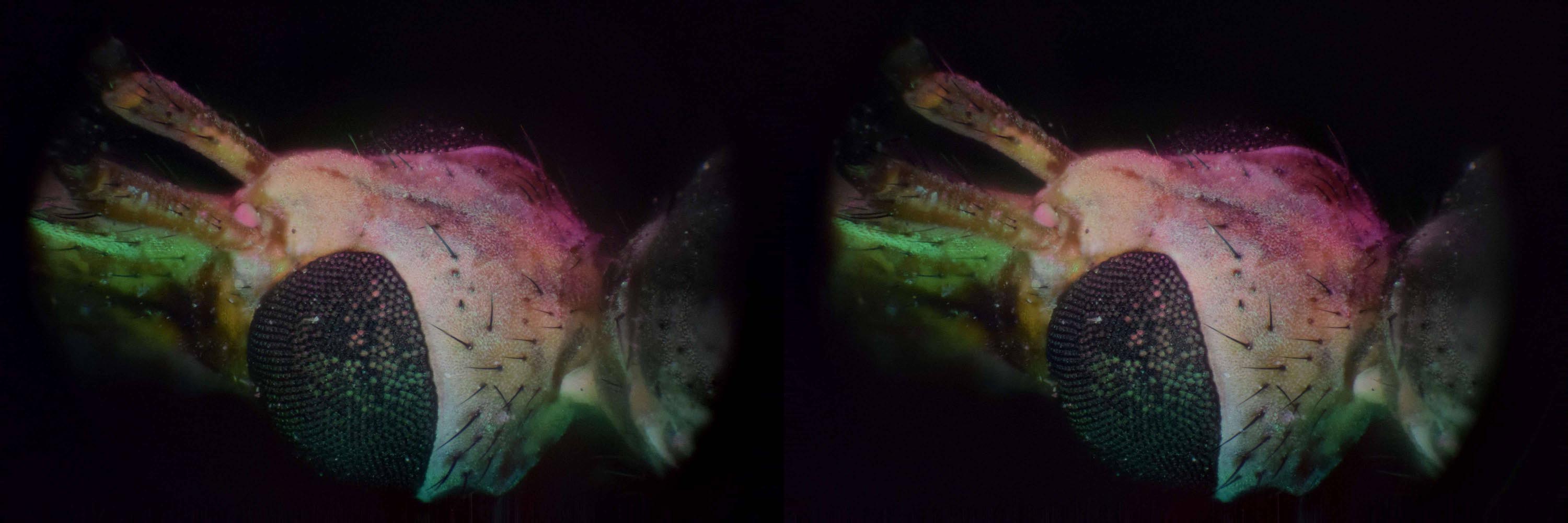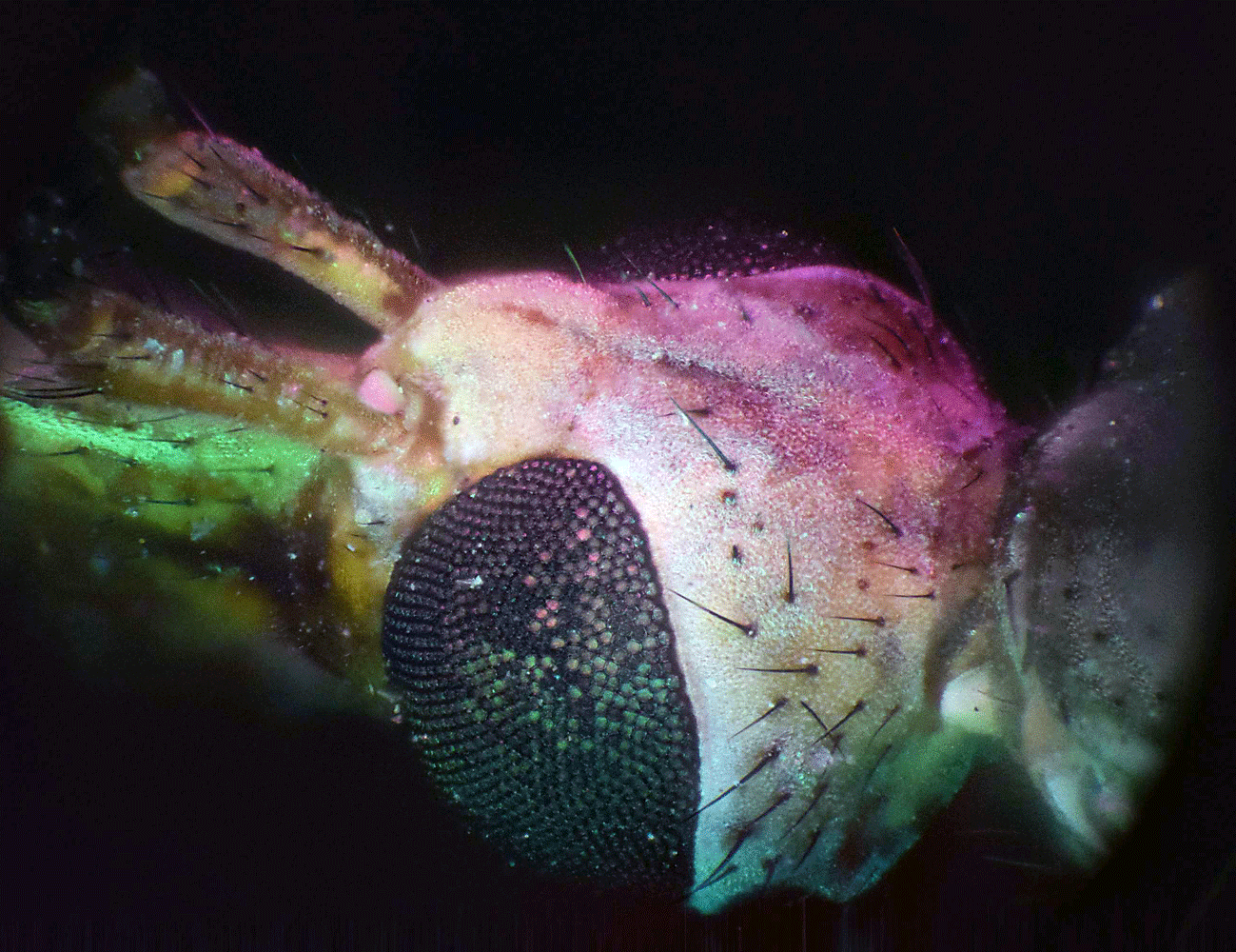 Here we have the head of a fly (not a common housefly), with 5x epi-darkfield.