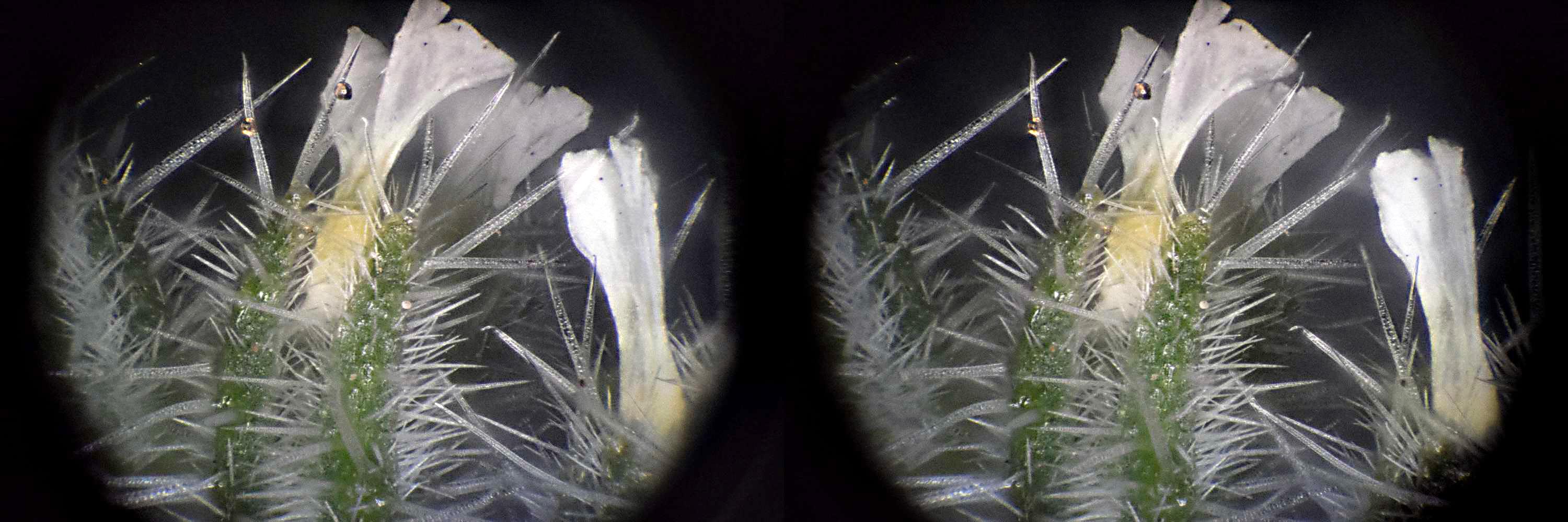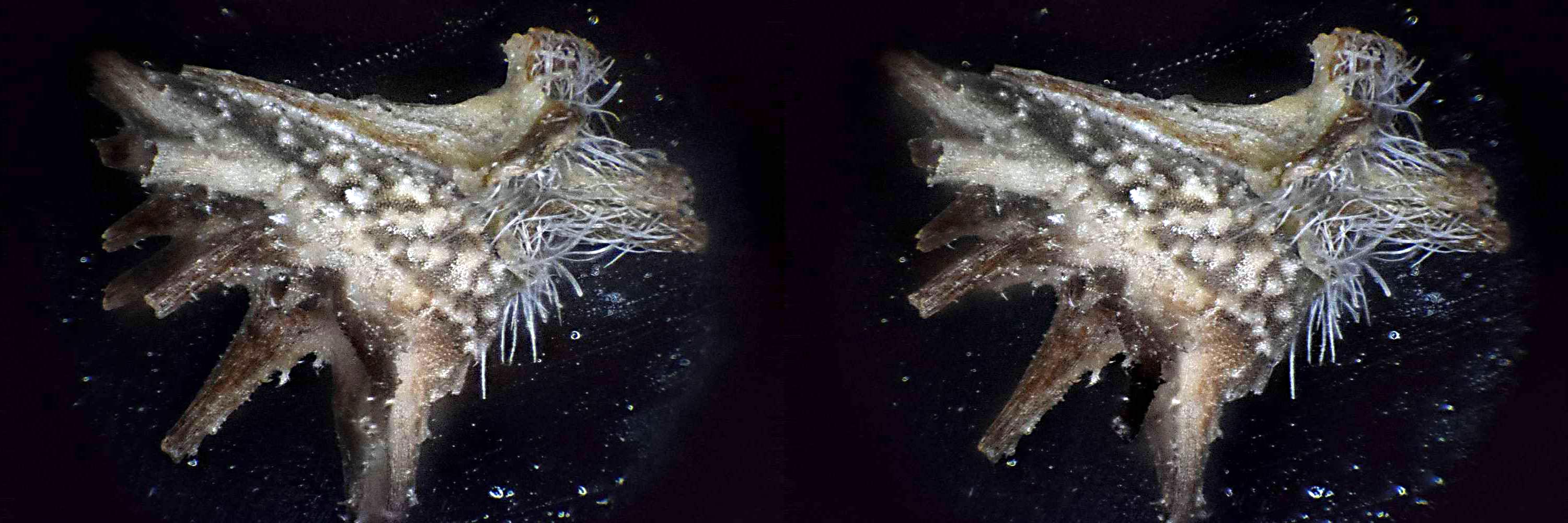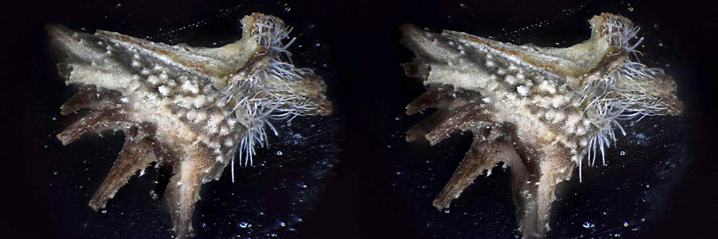 Here is a stack of 297 images with 5x BD epi-darkfield of a common burr that I found on the leg of my pants.