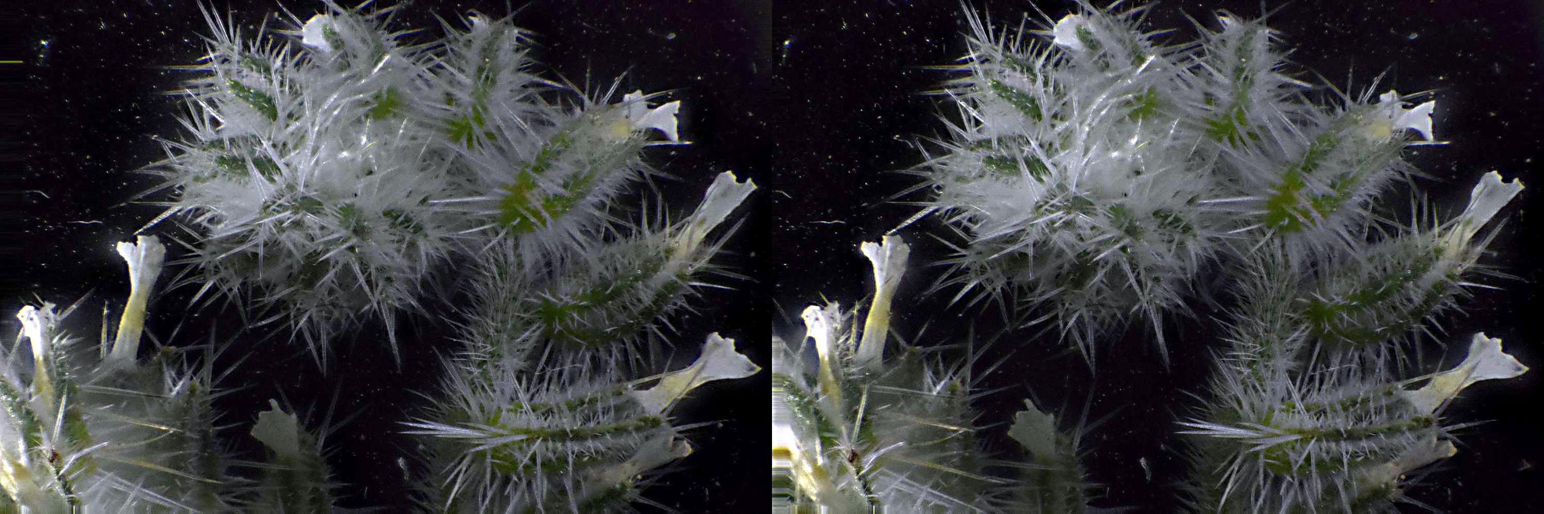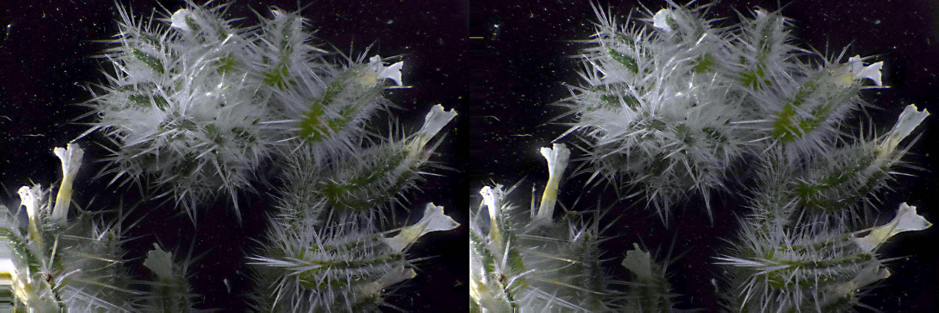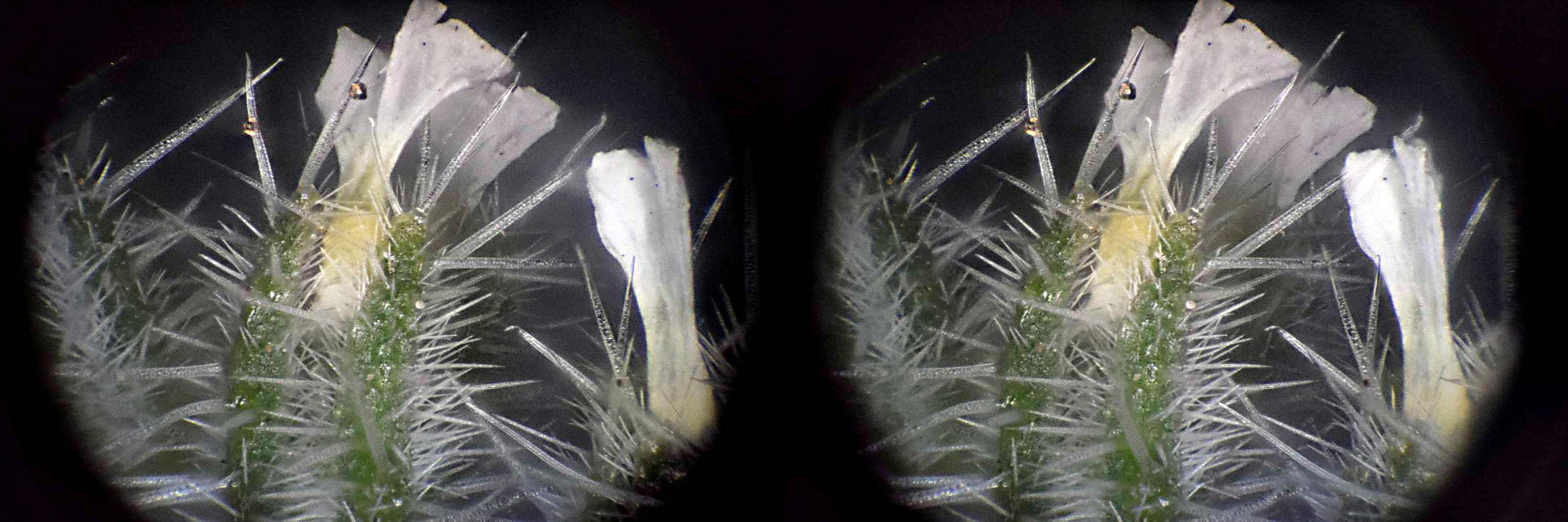 Here is a stack of 297 images with 5x BD epi-darkfield of a common burr that I found on the leg of my pants.