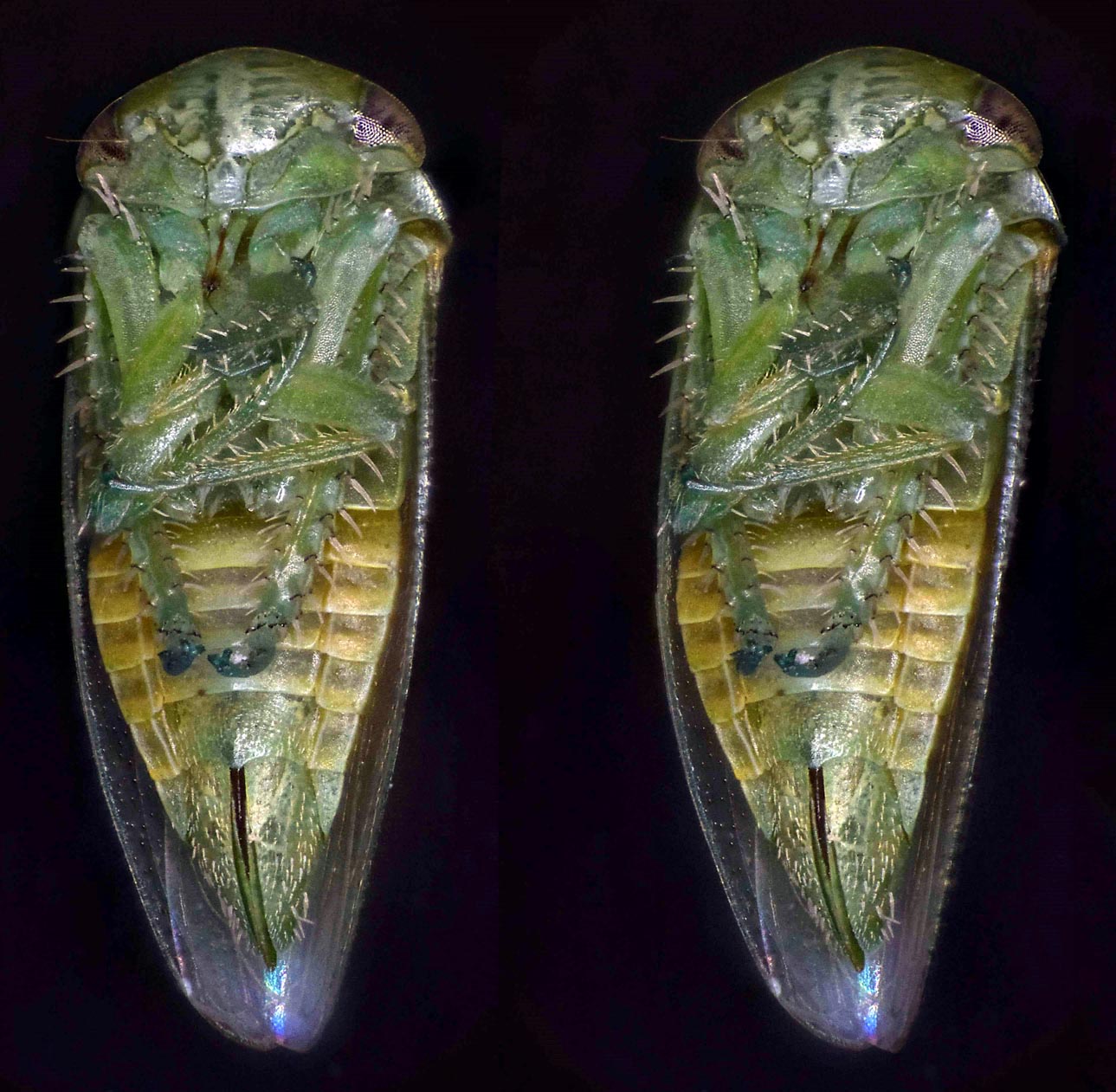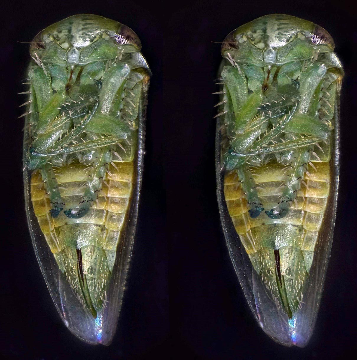 Again with the 5x BD Plan, with the addition of stitching in Microsoft ICE, I took the following stack of 49 and 30 images of the ventral view of a small green nymph (immature insect).