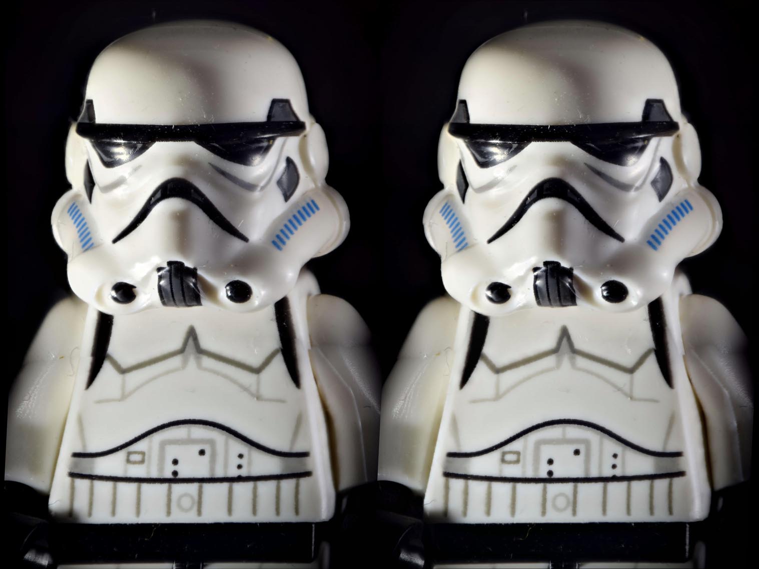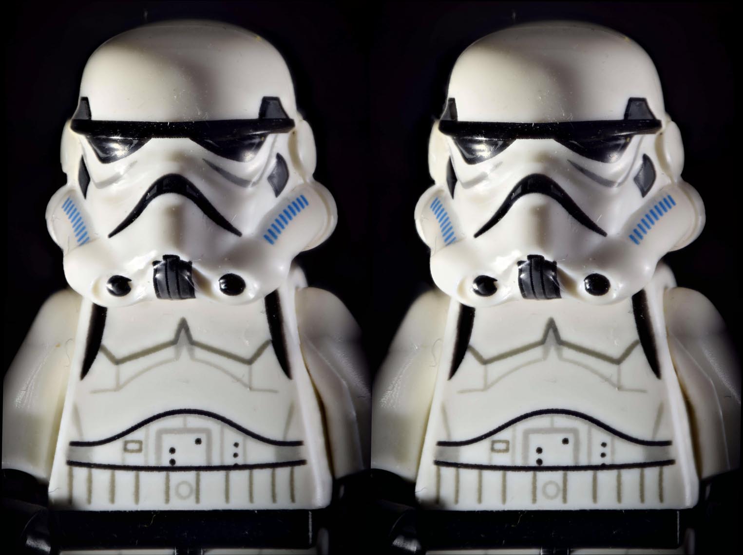 Here we have an extreme-macro stack and stitch with a Helios 44 (f/2 58 mm) lens in combination with a Nikkor 55-200 mm zoom of a LEGO Stormtrooper.