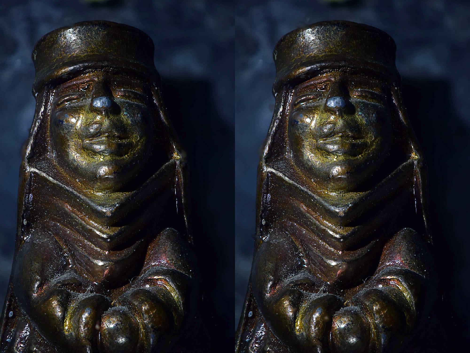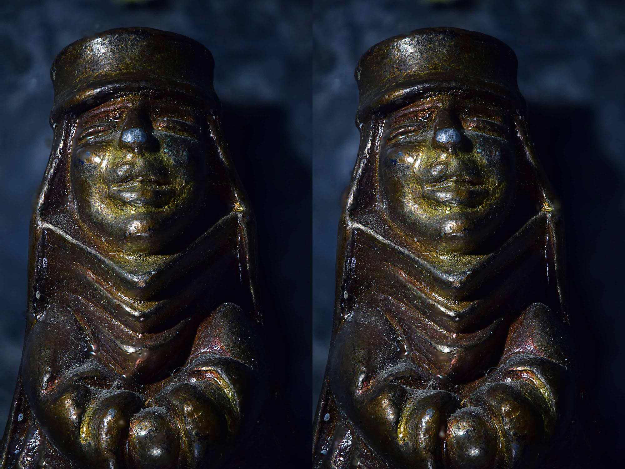 A small metal figurine with the same reversed Pentax 67 165 mm lens at f/8 with a 50 image focus stack with Zerene Stacker DMap.