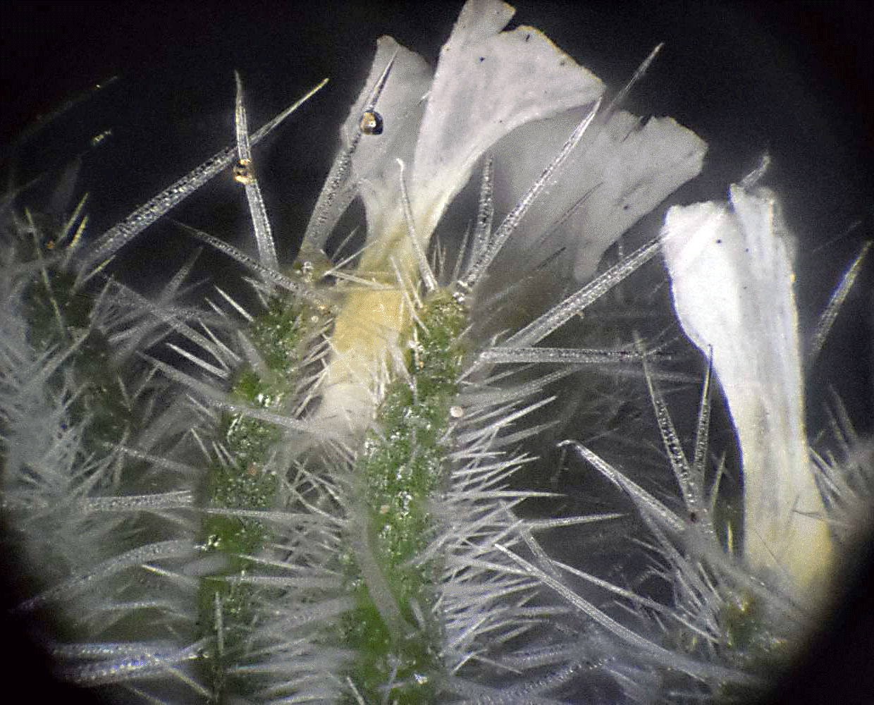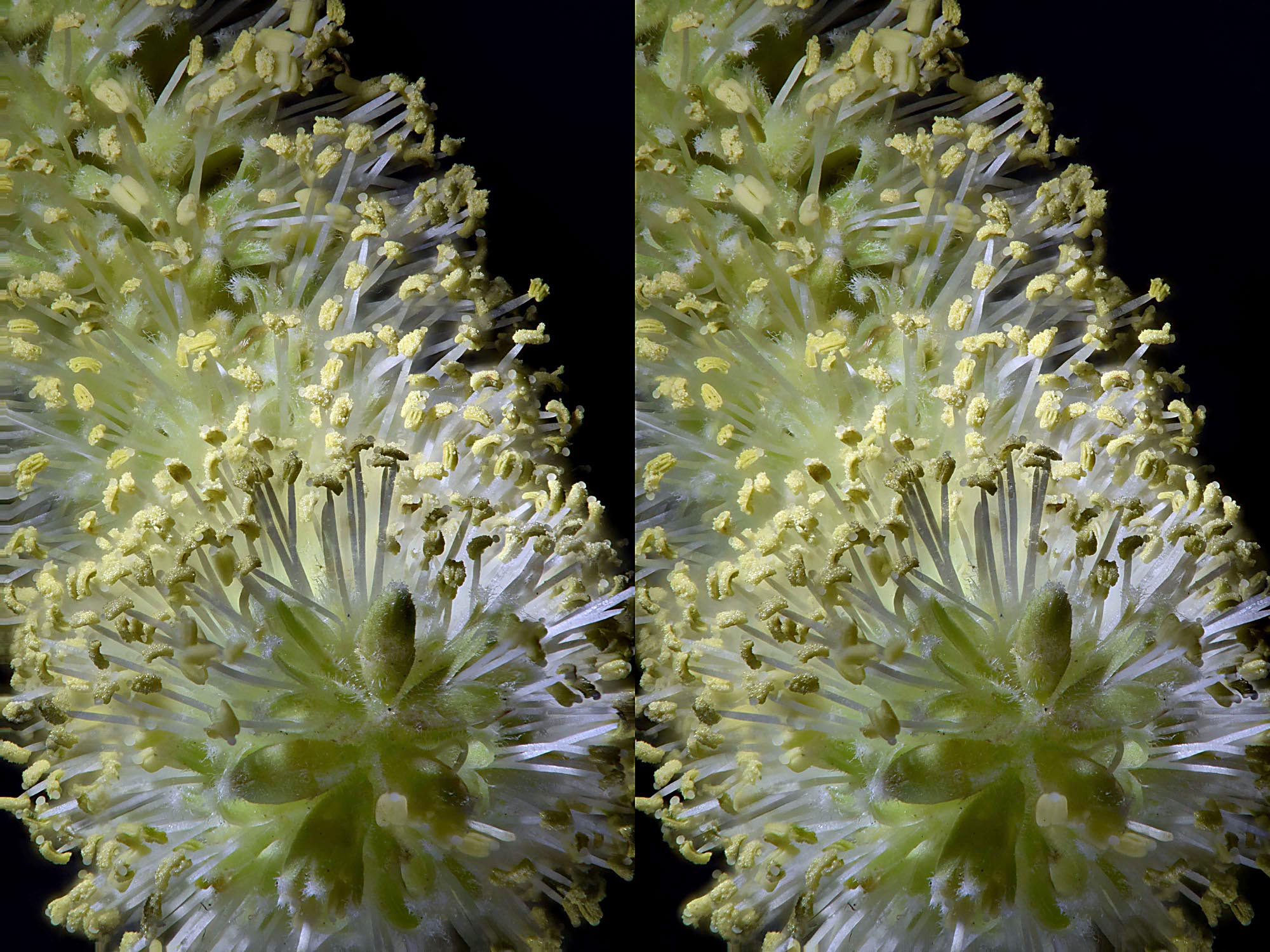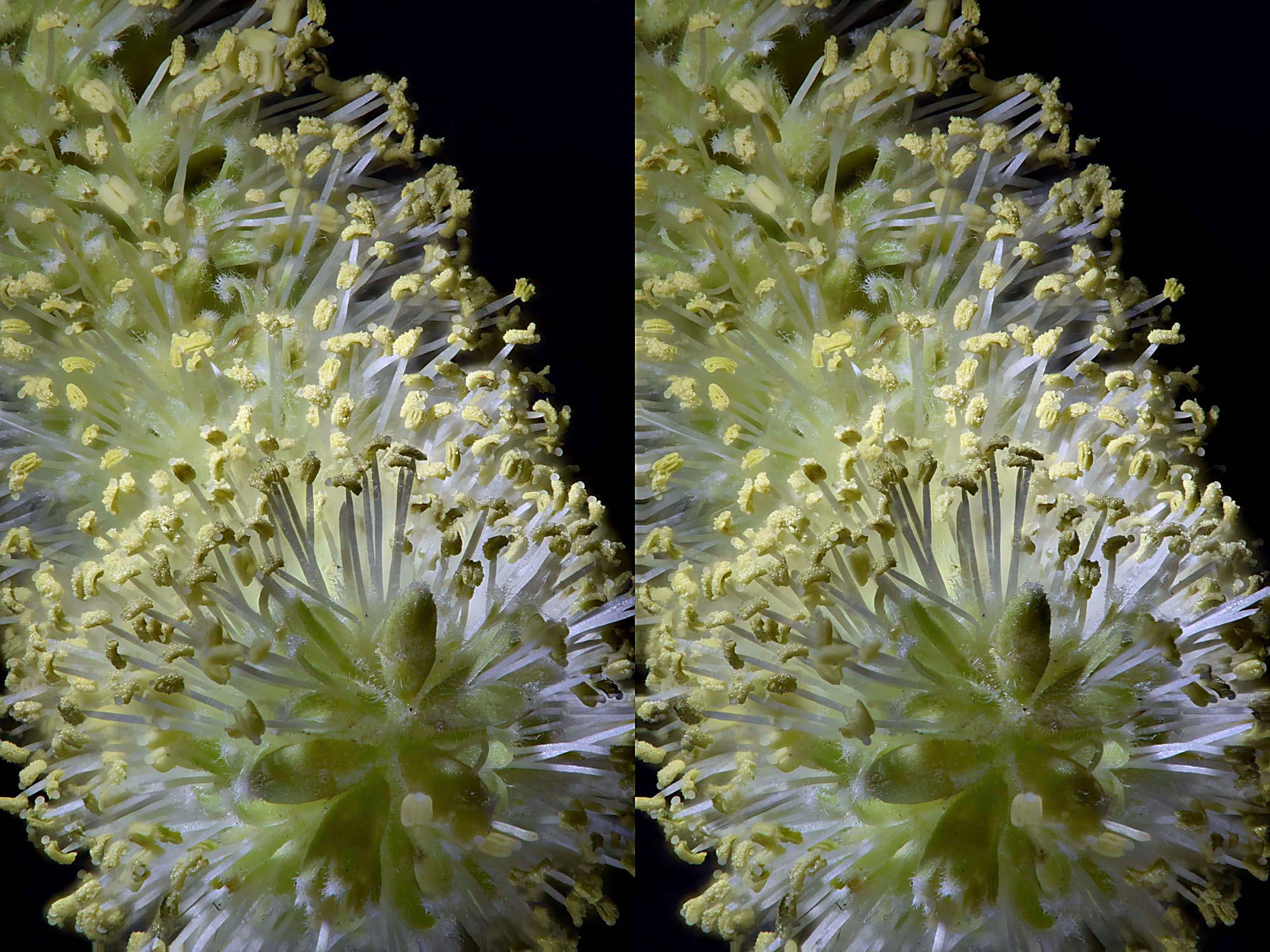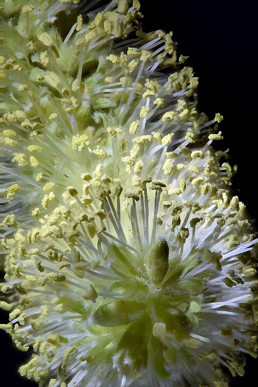 A mesquite tree blossom with the same reversed Pentax 67 165 mm lens at f/2.8 with a 296 image focus stack with Zerene Stacker PMax.