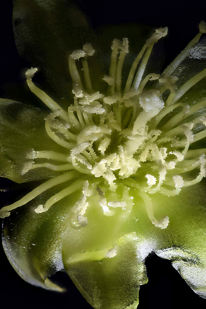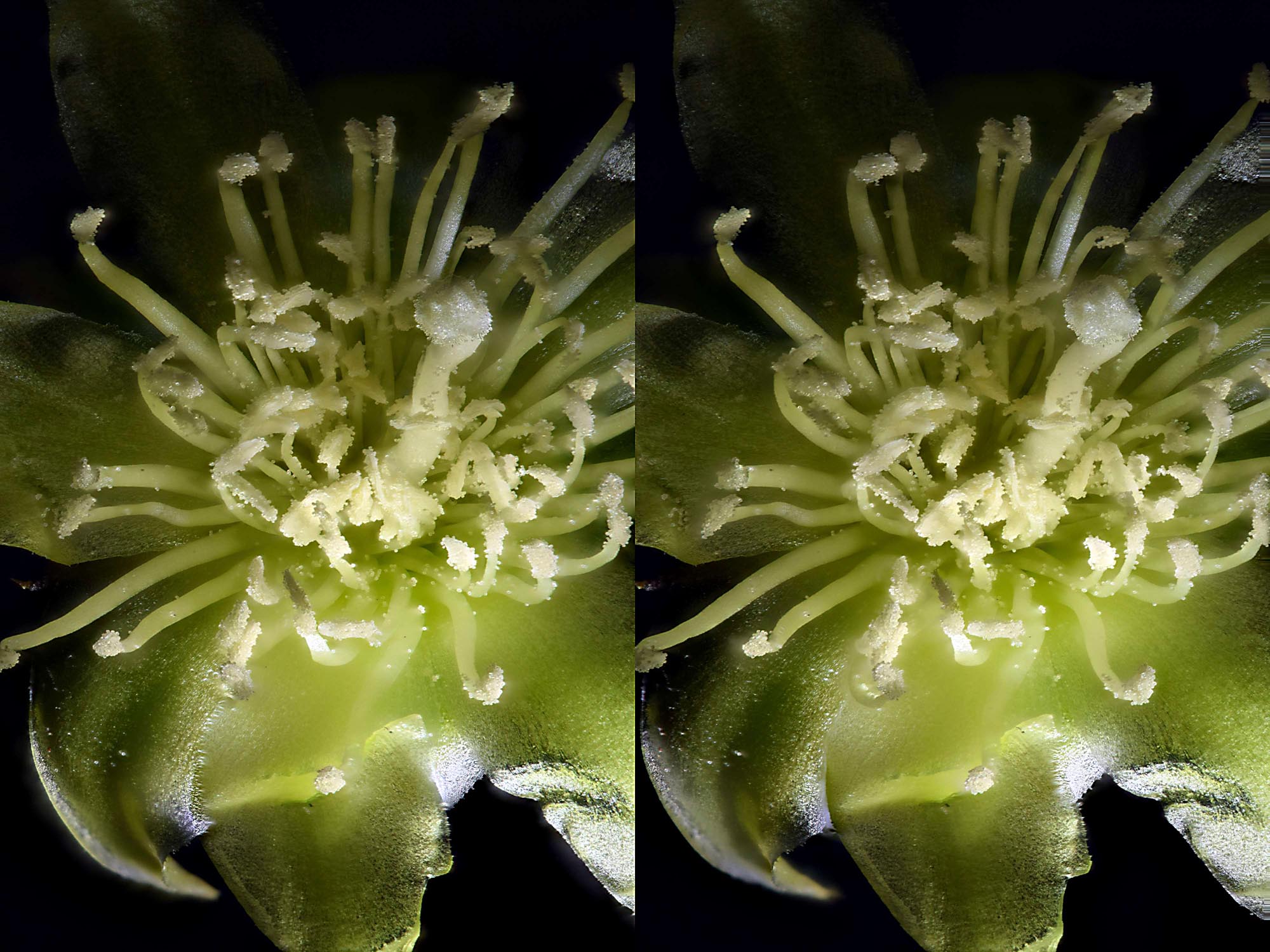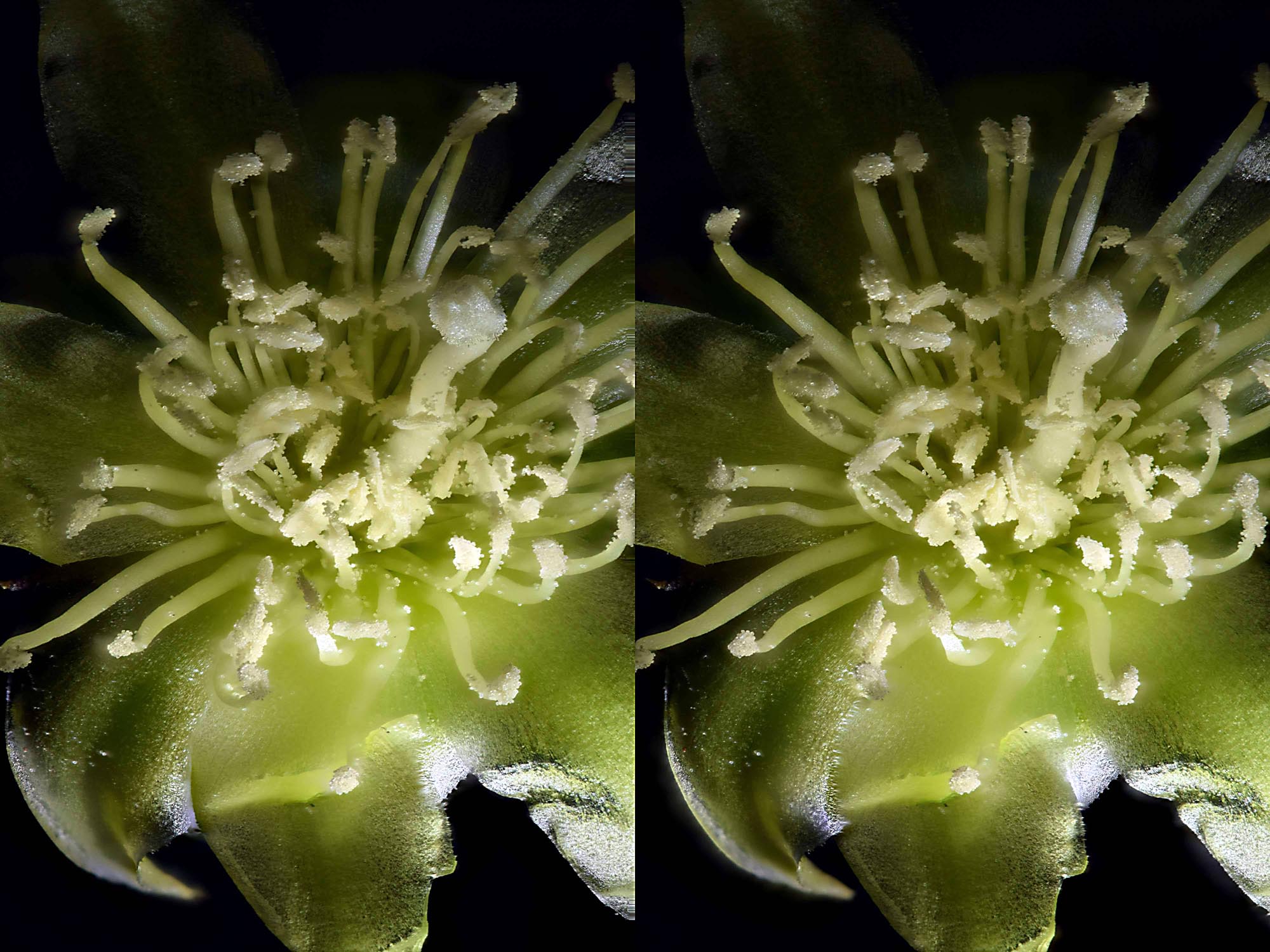 A pencil cactus flower with the same reversed Pentax 67 165 mm lens at f/8 with a 77 image focus stack with Zerene Stacker PMax.