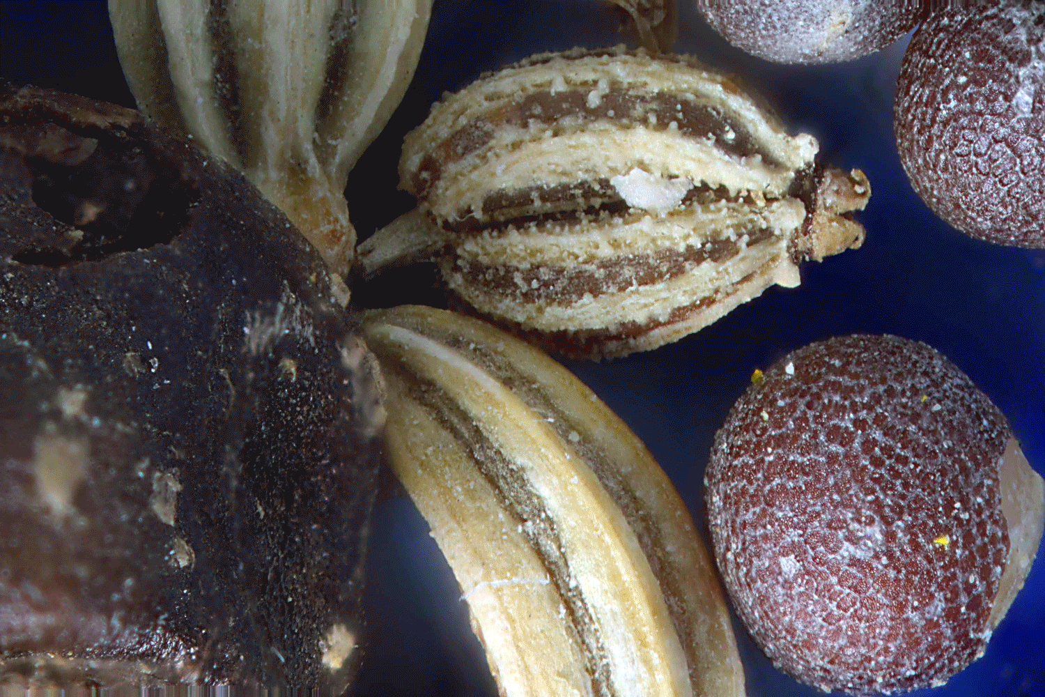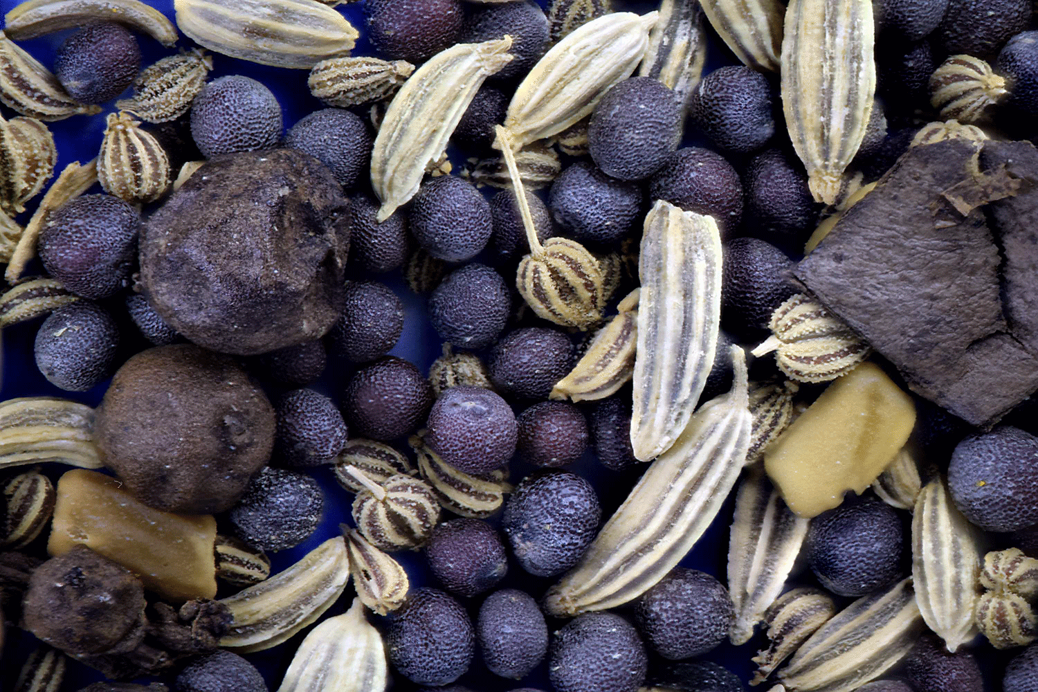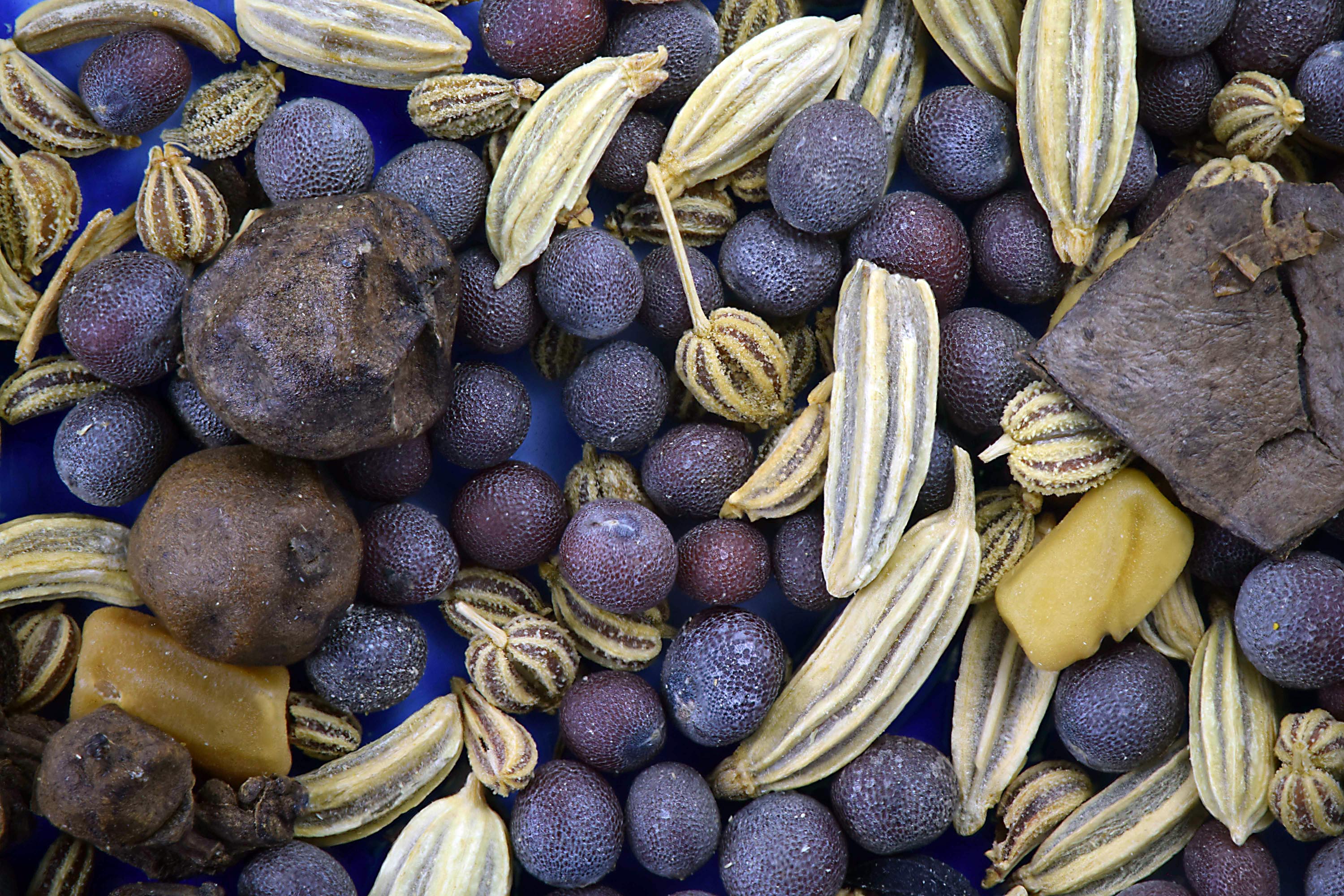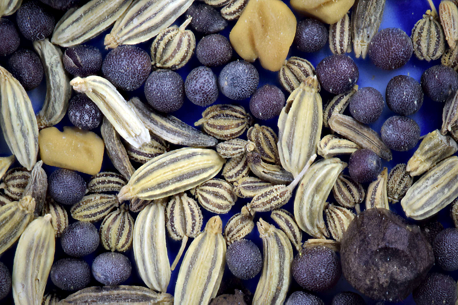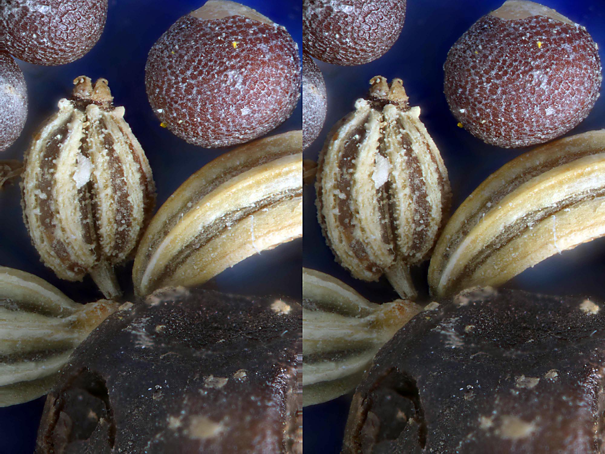 Now with a reversed Pentax 67 200 mm lens (1:1), I obtained the following stacks of ~70 images of Indian spice seeds.