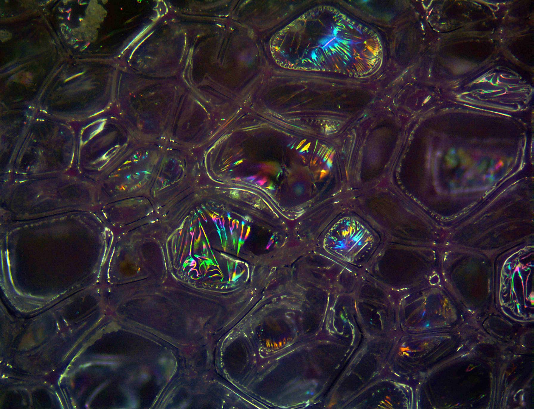 Photographic "Rapid Fixer" is primarily ammonium thiosulphate, so here are some of the crystals formed. Using a 40x Hoffman objective plus polarizers give a unique feel to these three images, with Zerene Stacker PMax (#3 is DMap).