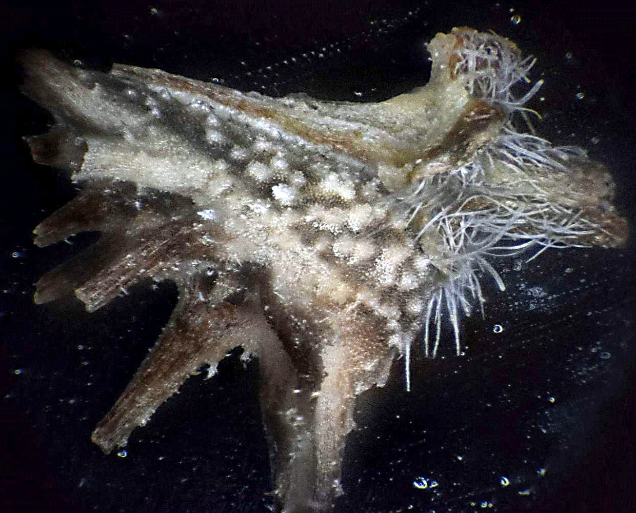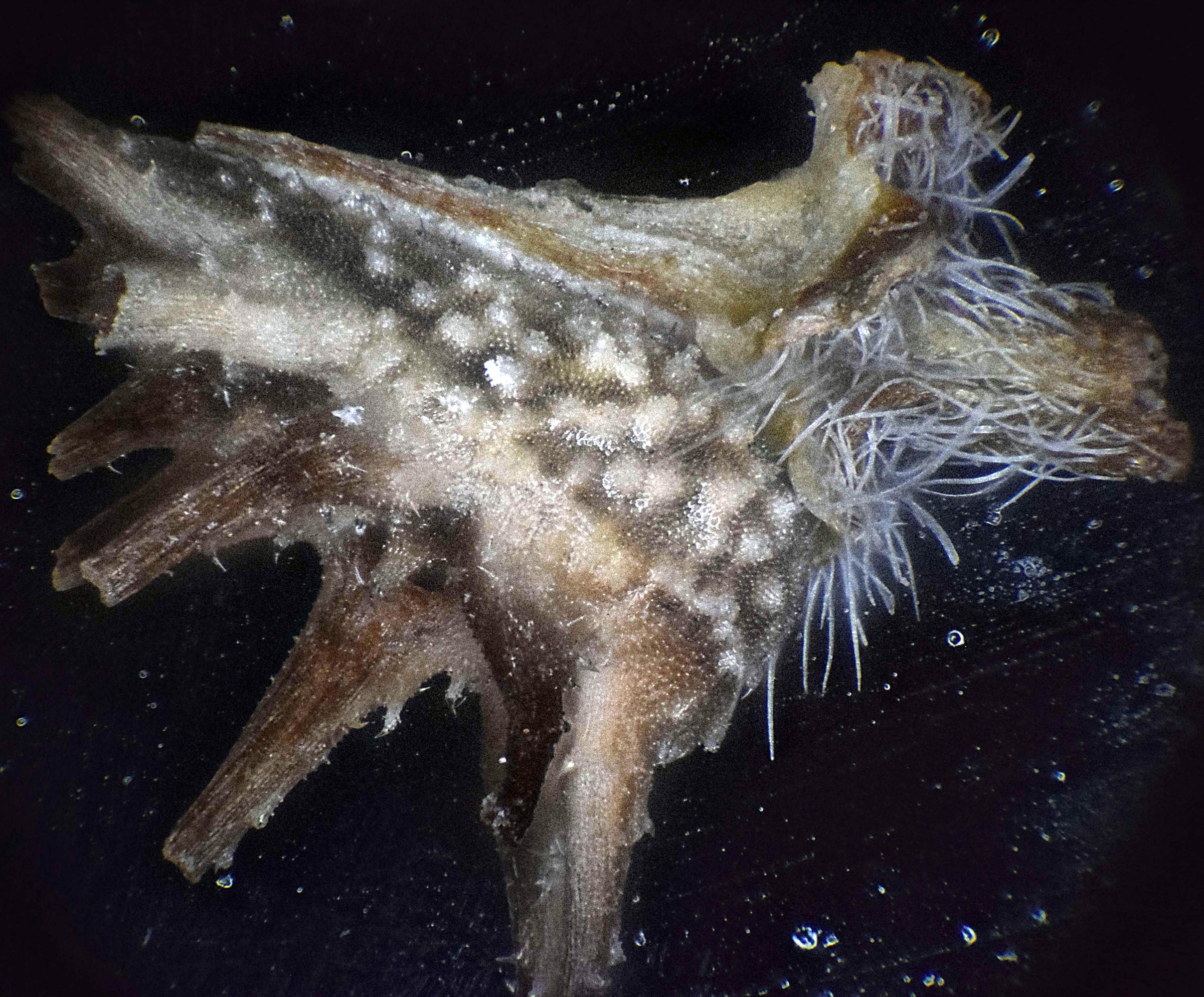 This is the epi-darkfield version of the fiddleneck seen in extreme macro section.