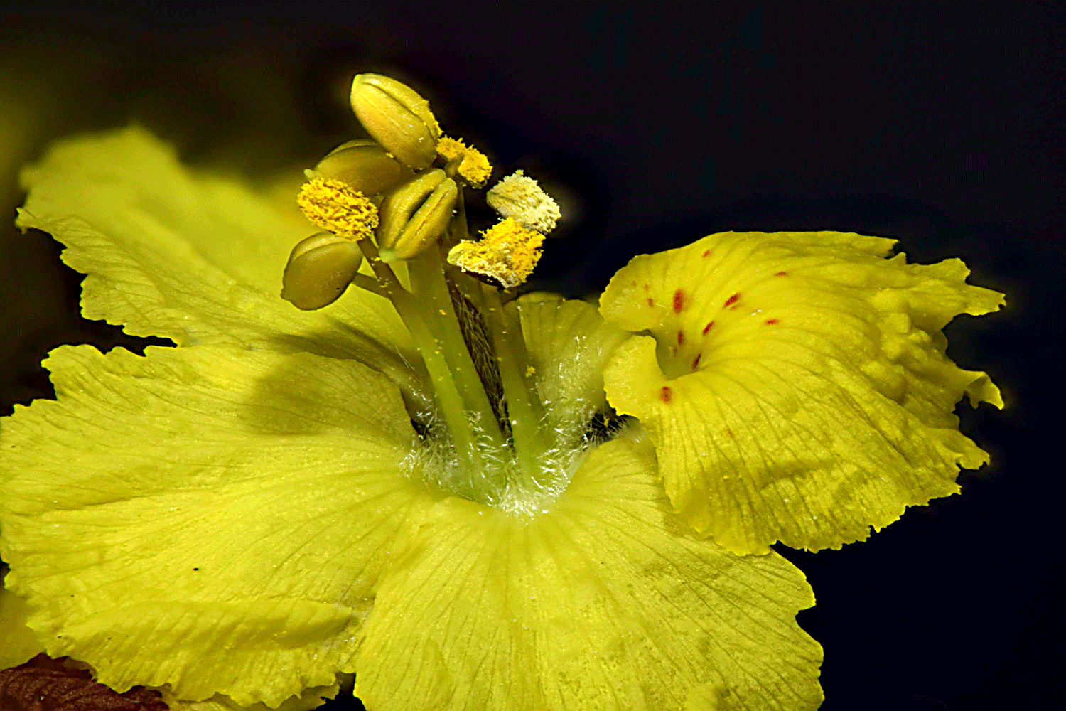 A palo verde blossom with an extreme macro reversed Pentax 67 165 mm lens at f/4 with a 97 image focus stack with Zerene Stacker PMax.
