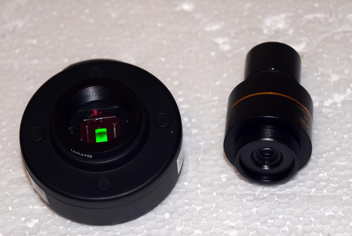 Here is the 5.2 MP version. They all have a 0.5x relay lens threaded into the front. Removal allow viewing of the CCD sensor, as shown.