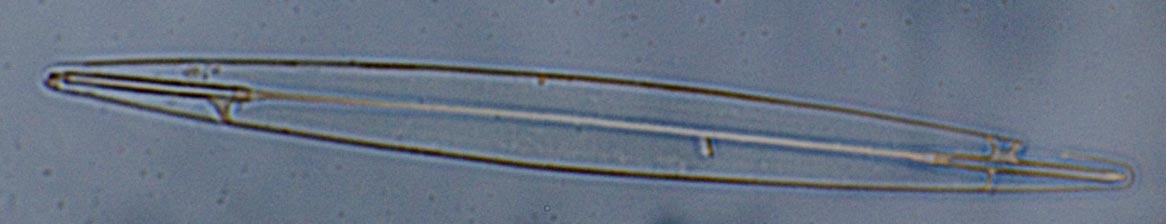 An example of what can be done with the DSLR is shown below, being cropped and scaled by 1/3 from the original 24 MP image (6000 x 4000). It is an extremely tiny diatom at 100x phase contrast.
