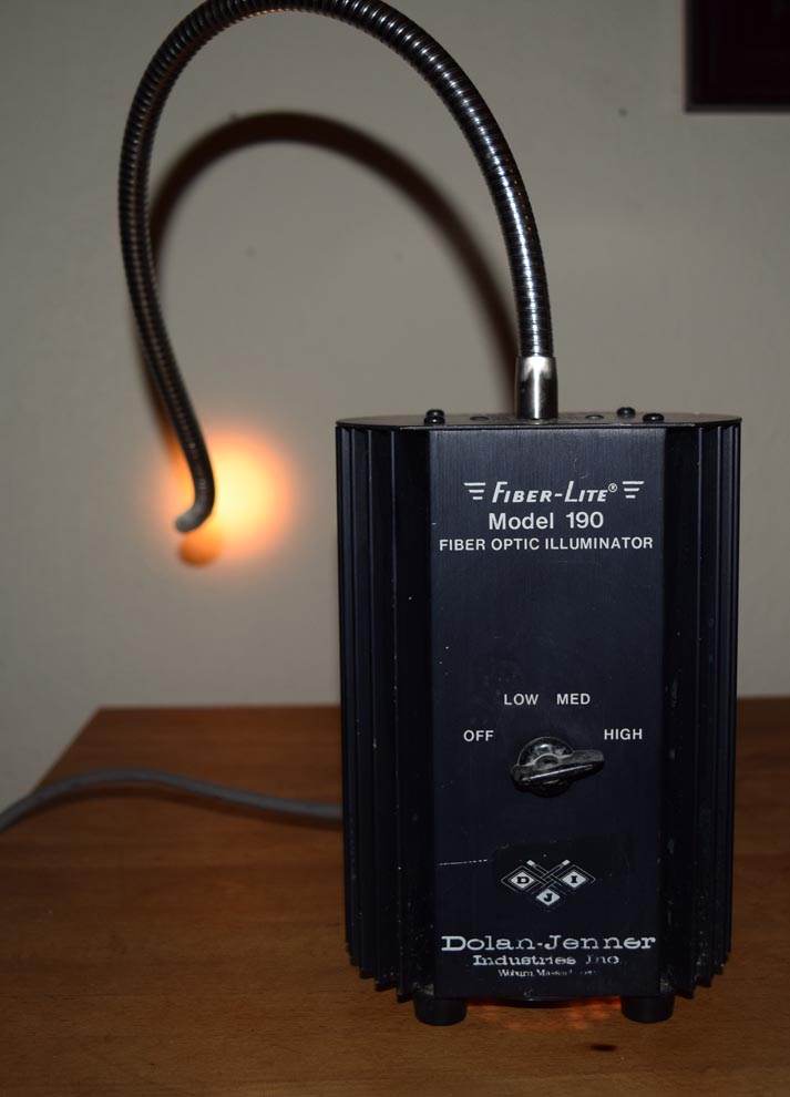 There are systems where a lamp is housed in an enclosure and fed to the desired location via a fiber optic bundle, called a fiber light. These can be incandenscent, halogen, or arc lamps. Certain episcopic illuminators have a port to accept a fiber light.